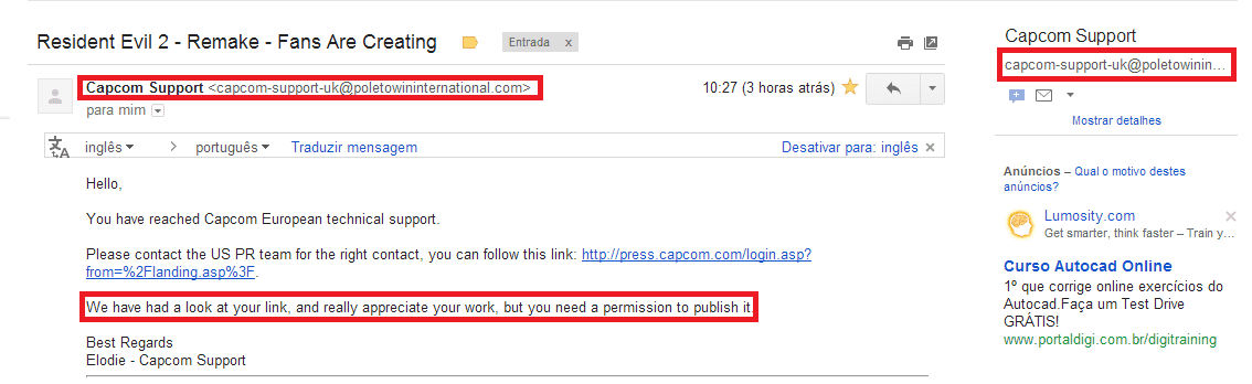Porém, o e-mail veio de um contato não oficial. Depois de uma conversa de um investigador da GameVicio por e-mail com o real contato da Capcom UK, a mesma respondeu que não havia e-mail algum registrado em seus arquivos. E pra piorar ainda afirmou que “no caso de irregularidades, os responsáveis deverão responder judicialmente”.